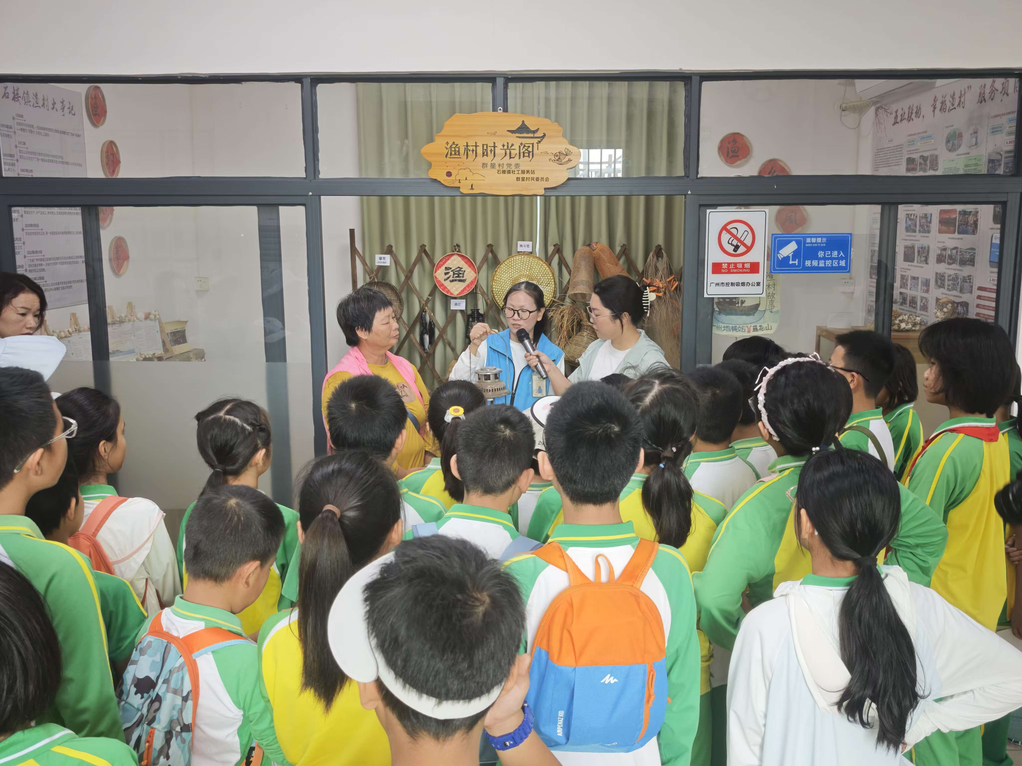 在渔村时光阁,学生们通过“任务卡”开启了自主探索之旅。老渔民陈姨生动讲解各类渔具的名称与用途,并邀请学生现场操作体验。从一件件实物、一幅幅照片到学生志愿者动情讲述的历史故事牛盈服务中心,四大展区——“渔韵纪事”“渔乡风物”等,将渔村发展历程与渔民吃苦耐劳的精神娓娓道来。