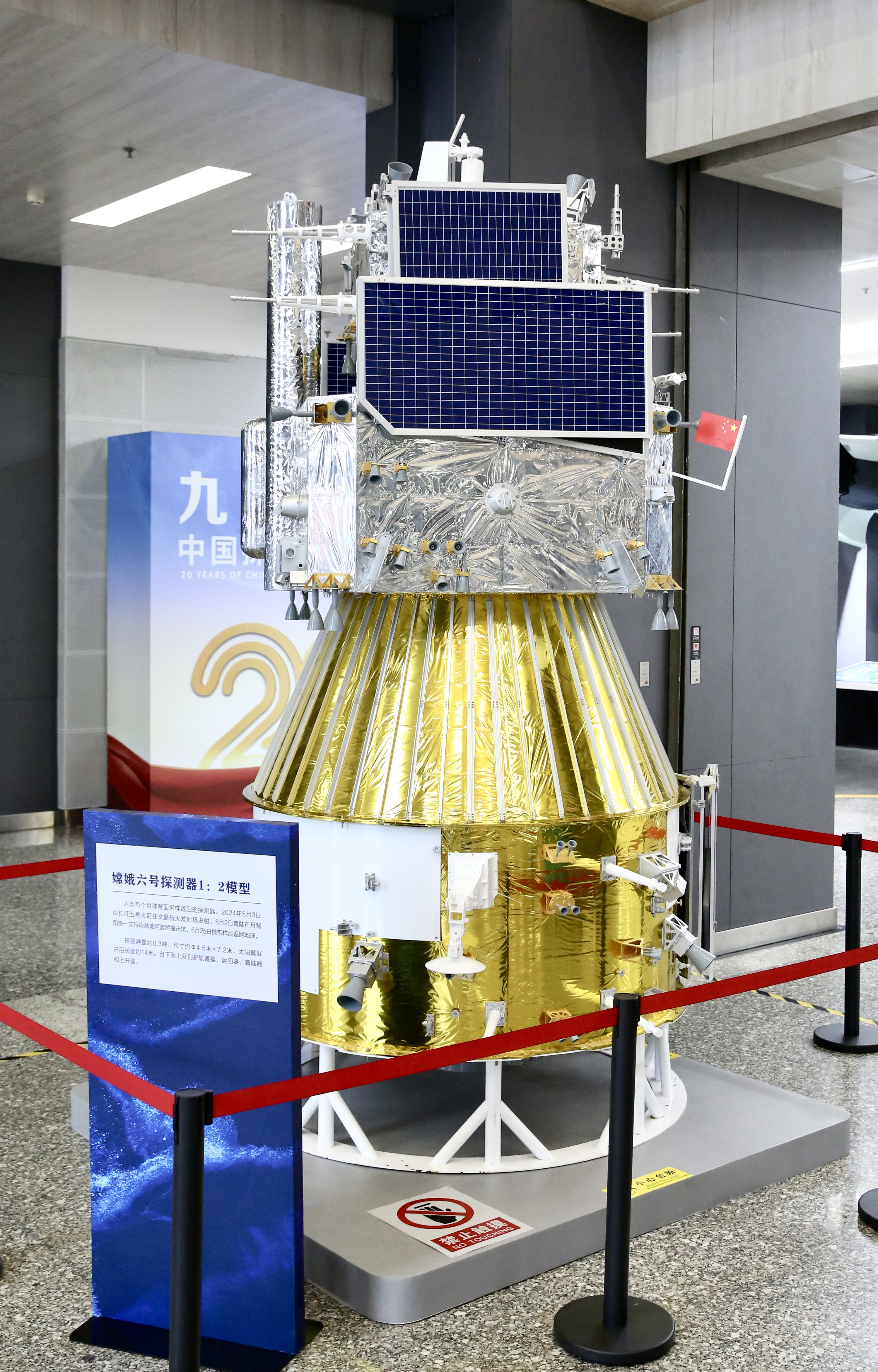 国庆假期,由国家航天局探月与航天工程中心与四川科技馆联合主办的“九天揽月——中国探月工程20年”主题展览,正式登陆四川,免费对公众开放。封面新闻记者在现场看到,展出现场不仅陈列着嫦娥五号、嫦娥六号从月球正面、背面带回的真实月壤,高达1米左右的嫦娥五号返回器实物,用玄武岩织成的国旗,还有嫦娥一号卫星、嫦娥六号探测器等高精度模型。